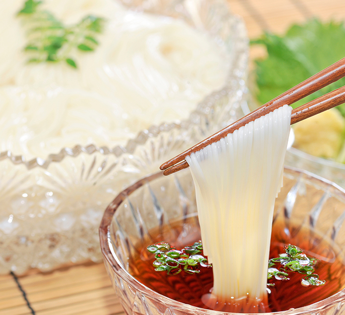 Chilled Somen Noodles with Spicy Meat Miso and Persimmon Vinegar