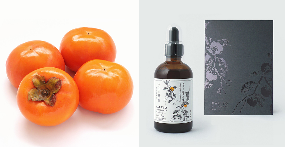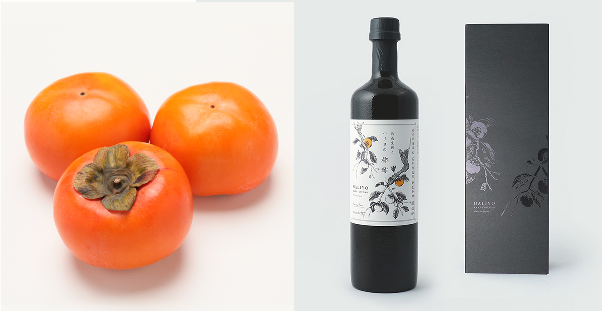 HALIYOファームの完熟富有柿とその柿で作ったハリヨの柿酢のセットです。